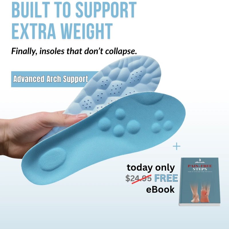 Yes. Pillow Sole™ insoles are engineered with advanced cushioning and reinforced arch support, so they stay strong even under extra weight and higher pressure. Unlike flimsy insoles that flatten quickly, ours are built to keep their shape and comfort for months of daily use — giving you stable, all-day support with every step.